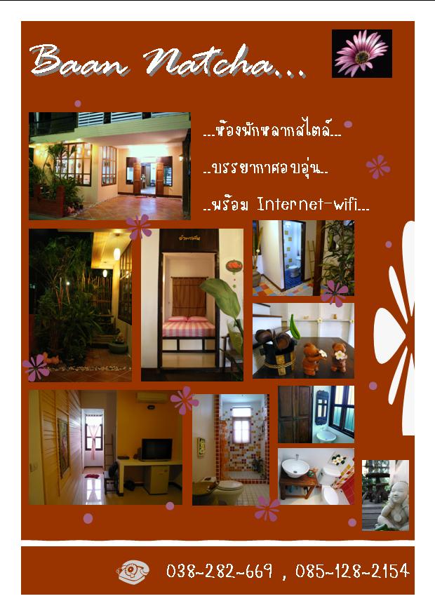 บ้านณัชชา บริการห้องพักราคาประหยัด 500 บ. ใจกลางเมืองชลบุรี ตกแต่งเก๋ บรรยากาศอบอุ่น สะดวกสบาย แอร์ ทีวี ตู้เย็น เครื่องทำน้ำอุ่น free wireless internet ทุกห้อง