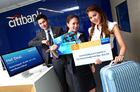 ตัวแทนที่ปรึกษาทางการเงินซิตี้แบงก์ (Personal Banker) นำเสนอสิทธิประโยชน์ ภายใต้แคมเปญ “Hot Deal.” โดยจัดให้กับลูกค้าที่เข้ามาสมัครใช้บริการและผลิตภัณฑ์ทางการเงิน ณ สมาร์ท แบงก์กิ้ง (Smart Banking) ธนาคารซิตี้แบงก์ (อาคารอินเตอร์เชนจ์ สี่แยกอโศก) รับกระเป๋าเดินทางสุดหรู พร้อมบัตรกำนัลรับประทานอาหารโรงแรมแกรนด์ มิลเลนนียม สุขุมวิท (Grand Millennium Sukhumvit) รวมมูลค่าสูงสุดถึง 10,950 บาทต่อ 1 ท่าน ตั้งแต่วันนี้ จนถึง 30 กันยายน ศกนี้ เฉพาะที่ธนาคารซิตี้แบงก์ เท่านั้น ทั้งนี้ตามเงื่อนไขและข้อกำหนดของแต่ละบริการหรือผลิตภัณฑ์ สอบถามรายละเอียดและเงื่อนไขดังกล่าวได้ที่ โทร. 1588
