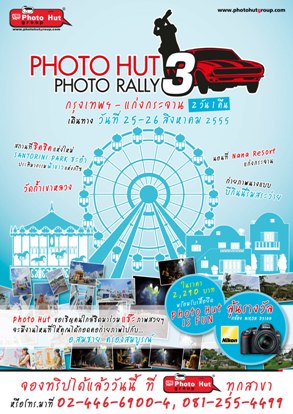บริษัท โฟโต้ ฮัท กรุ๊ป (ประเทศไทย) จำกัด ขอเชิญสมาชิกผู้รักการถ่ายภาพ มาร่วมกอดคอแชะภาพสวย ๆ แบบเอ็กซ์คลูซีฟ โดยกูรูกล้อง อาจารย์สมชาย ครองสมบูรณ์ ที่จะพาคุณร่วม ทริปไปกับเรา ในกิจกรรม “ โฟโต้ฮัท โฟโต้แรลลี่ ครั้งที่ 3 เส้นทางกรุงเทพฯ-แก่งกระจาน ร่วมสนุกไปกับกิจกรรมในสถานที่ท่องเที่ยวชื่อดัง อาทิ ซานโตรินี พาร์ค ชะอำ สถานที่สุดชิค สีสันใหม่แห่งประสบการณ์ความสุขสนุกสนาน พร้อมเครื่องเล่นนานาชนิด ชมประติมากรรมฟ้าขาวแห่งกรีซ แวะท่องเที่ยวสักการะ ณ วัดถ้ำเขาหลวง ถ้ำใหญ่ที่มีความสำคัญที่สุดในจังหวัดเพชรบุรี ซึ่งตั้งอยู่บนเขาหลวง ห่างจากเขาวังประมาณ 5 กิโลเมตร จากเชิงเขามีบันไดคอนกรีตนำสู่ทางลงถ้ำ เขาหลวงเป็นภูเขาขนาดเล็ก มียอดสูงสุดเพียง 92 เมตร และ มีหินงอกหินย้อยสีสันสวยงาม ภายในมีปล่องที่แสง-อาทิตย์สามารถส่องเข้ามาภายในถ้ำได้ พักผ่อนหย่อนใจสัมผัสบรรยากาศและไอเย็นจากธรรมชาติและขุนเขา ณ นาน่า รีสอร์ท แก่งกระจาน พบกับกิจกรรม การเรียนรู้เทคนิคการถ่ายภาพแบบต่าง ๆ อาทิ การถ่ายภาพแบบ Stop Action, การถ่ายภาพแนว Portrait, การถ่ายภาพเขียนไฟ ฯลฯ พร้อมถ่ายภาพเหล่านางแบบสุดเซ็กซี่ที่มาอวดสัดส่วน ในชุดบิกินี่ริมสระว่ายน้ำ ออกเดินทางวันที่ 25-26 สิงหาคม 2555 (2วัน1คืน)