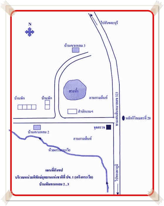 เราแวะชมที่หน่วยพิทักษ์เกริงกระเวีย ฝั่งซ้ายหลักกม.ที่ 28 ....เมื่อเข้าไปลานกางด้านซ้ายมือ บรรยากาศร่มรื่น ริมธารน้ำเล็กๆ