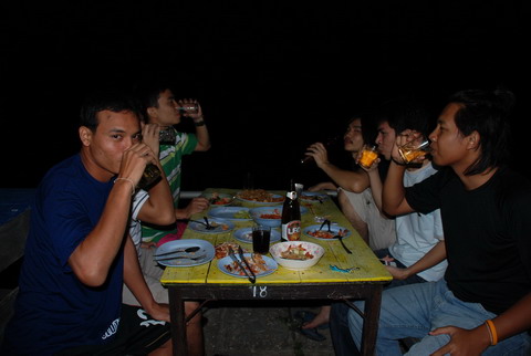 อาวว... ฉลองกันหน่อยย... ที่มองไปมืดๆ นั้นจะเป็นทะเลนะครับ หากได้นั่งอยู่ตรงนั้นจะรู้สึกว่ามันสุดยอดจริง