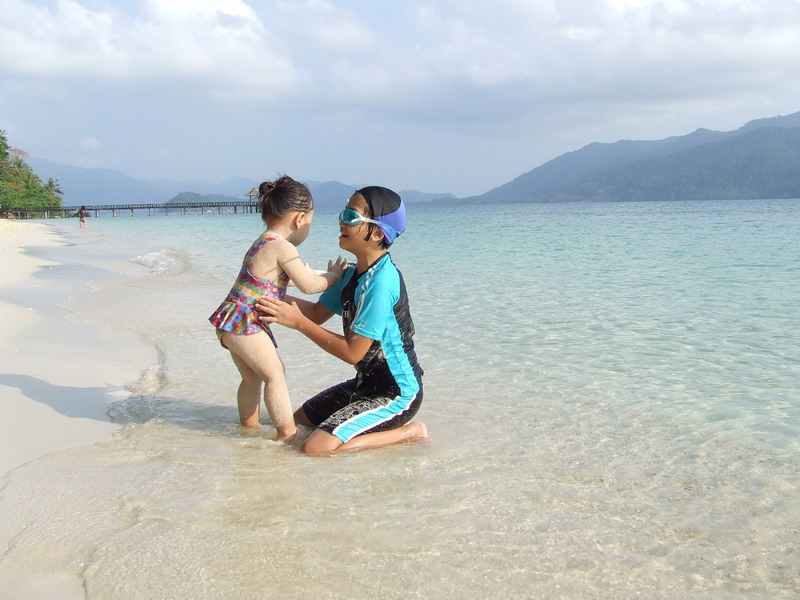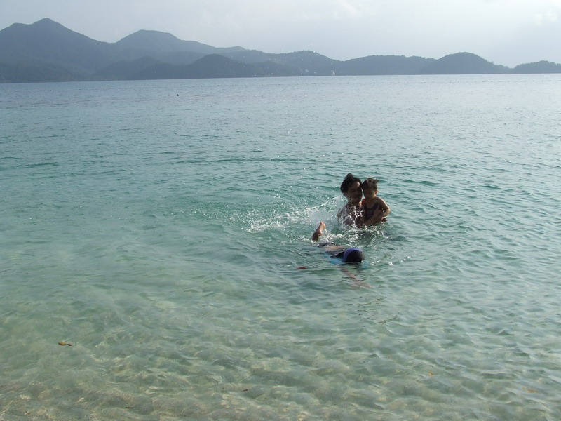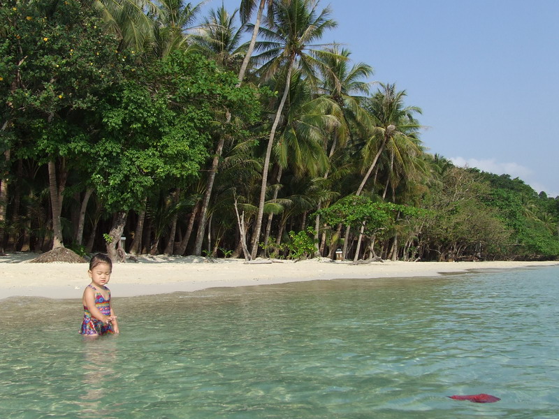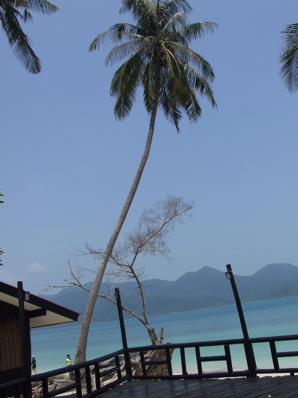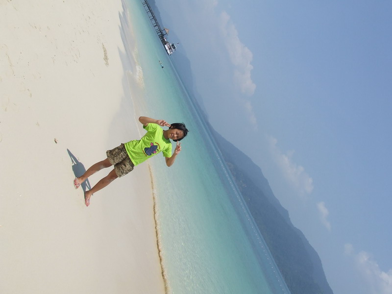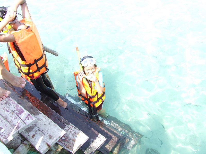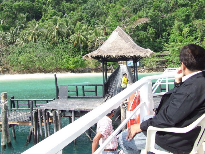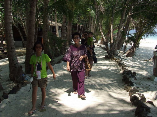 อันนี้มาถึงเกาะแล้วครับ สวยงามครับ น้ำใสมองเห็นปลา ไม่รู้ปลาอะไรครับตัวลายๆ แล้วก็ปลายกระทงเหงมั้ง(เดานะ)ตัวยาวๆ ระหว่างทางมีโต๊ะบริการน้ำมะพร้าวชื่นใจครับ แต่รู้สึกว่าหวานไปนิด แล้วก็ไป check in จ่ายเงินส่วนที่เหลือ แล้วเข้าที่พัก เรียงรายกันอยู่แถวหน้าหาดนั่นแหละครับ