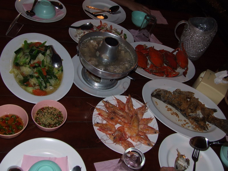 และแล้วก็ถึงเวลาอาหารเย็น สุยอดเช่นเคย ส่วนตัวผมชอบปลาครับ สดมาก น้ำจิ้มปูก็เปรี้ยวเผ็ดกำลังดี ตบท้ายด้วยแตงโม และถั่วเขียวต้มน้ำตาล+น้ำกะทิ ผมติดใจน้ำกะทิครับ ทำได้หอมมาก สรุปว่าชอบมาก