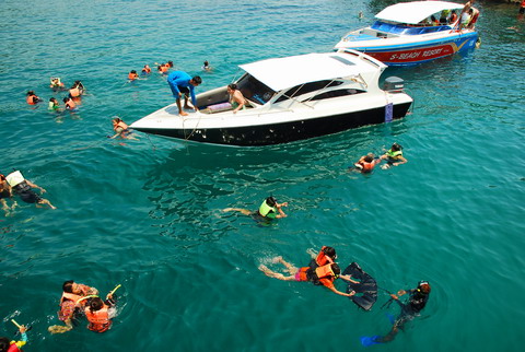 แต่ด้วยการบริการแบบถึงใจของรีสอร์ทครับ ถึงแม้เราจะไปไม่ทันเวลาที่นัดไว้และเรือใหญ่พาดำน้ำก็ออกไปแล้ว แต่ที่นี่ก็มีเรือเร็ว สปีดโบ๊ทพาตามออกไปอย่างเร็วจี๊ จนเราถึงที่ดำน้ำเกาะแรกก่อนเรือใหญ่ด้วย หุหุ โล่งอก...