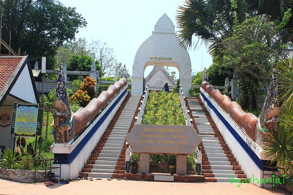 ออกจากอนุสรณืสถานผู้เสียสละกลับเส้นทางเดิมแวะขอพร พรมธาตุเจดียืกาญจนาภิเษก