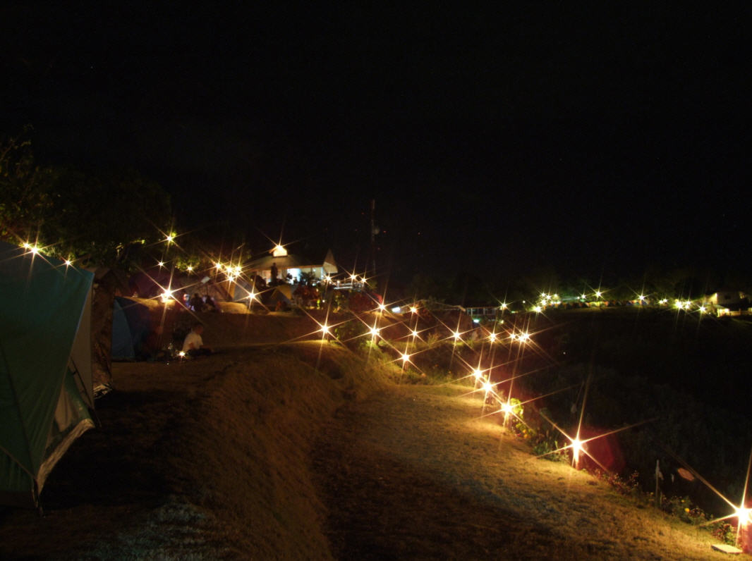 ตกดึกก็จะเห็นแสงไฟทอดยาว จากเต็นท์สู่เต็นท์ไปเรื่อยๆ ซึ่งแต่ละหลอดก็จะมีสวิตซ์ครับ หากสว่างไปเราก็ปิดได้หรือหากต้องการแสงไฟก็เปิดได้ครับ ภาพแบบนี้ก็ถือว่าหาดูได้ยากเหมือนกันครับ