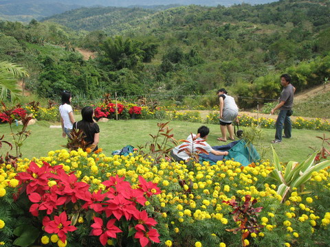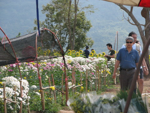 หลังจากเลี้ยวซ้ายลงมาสักพัก ประมาณ 6-7 กม. (ไม่แน่ใจครับ แต่ไม่ไกล) ที่นี่จะมีดอกไม้มากมายหลายชนิด แต่บังเอิญผมไม่ค่อยรู้จักพันธ์ดอกไม้เท่าไร แฮ่ะๆๆ แต่ที่เด่นๆ ประจำที่นี่ก็จะเป็นดอกเบญจมาศและดอกทานตะวัน ซึ่งก็มีนักท่องเที่ยวมาชมเป็นจำนวนมากเหมือนกัน ได้ยินเขาคุยๆ กันว่ามาที่เดียวได้ดูหลายชนิดดีแถมยังกางเต็นท์ตามรีสอร์ทรอบๆ นี้ก็ได้ ในช่วงกลางวันจึงเลือกมาชมดอกไม้ก่อน