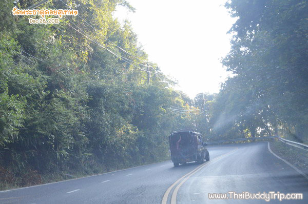จากนั้นเราก็ขับรถตรงขึ้นสู่ดอยสุเทพทันที ที่นี่หากท่านใดไม่สะดวกขับรถยนต์ขึ้นก็จะมีรถโดยสารสองแถวสีแดงให้บริการพาขึ้นลงดอยสุเทพเช่นกันครับ