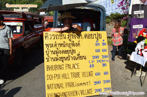สนนราคาค่าโดยสารจากหน้าวัดพระธาตุดอยสุเทพครับ ราคาที่แสดงเป็นราคาขาเดียวนะครับ คือ