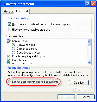 ในแต่ละครั้งที่เรามีการเปิดไฟล์ข้อมูลต่างๆ Windows จะมีการบันทึกรายชื่อไว้ใน My Recent Document และหากมีจำนวนมากแล้วเราต้องการจะลบภายในครั้งเดียว สามารถทำได้โดย