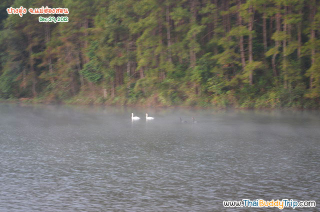 ไฮไลท์ที่สร้างเสียงฮือฮาอีกอย่างหนึ่งของเช้านี้นั่นก็คือ นั่นไงๆ เห็นมั๊ยออกมาแล้ว เสียงนักท่องเที่ยวต่างชี้ไปทางเดียวกัน ผมก็มองตามเขาไป อ้อ หงส์คู่นั่นเองครับ หงส์ขาวและหงส์ดำอย่างละคู่ว่ายน้ำออกมาเป็นพรีเซนเตอร์ให้นักท่องเที่ยวรัวชัตเตอร์กัน