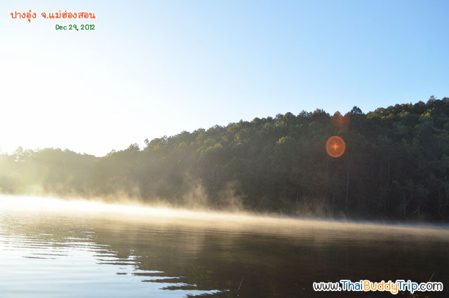 และแล้วเวลาที่ทุกคนรอคอยก็มาถึง เวลาเช้ามืดที่ทุกคนจะออกไปถ่ายรูปโต้ลมหนาวกับสายหมอกเหนือ "อ่างเก็บน้ำปางตอง"