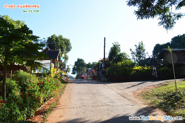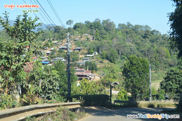 หลังจากขับรถจากปายตามถนนหมายเลข 1095 มาเรื่อยๆ ถ้านับระยะทางจากปายมาถึงทางแยกเข้าปางอุ๋งก็จะประมาณ 90 กม นะครับ จะมีป้ายชี้เข้าไป "