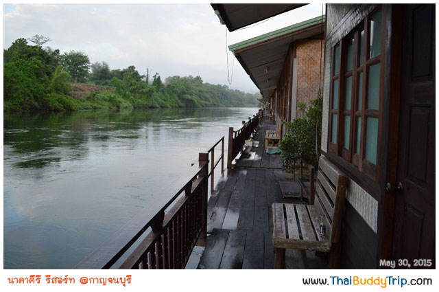 เก็บภาพบรรยากาศจากหน้าห้องด้านที่หันเข้าแม่น้ำแควน้อย นั่งดูน้ำไหลเพลินๆ