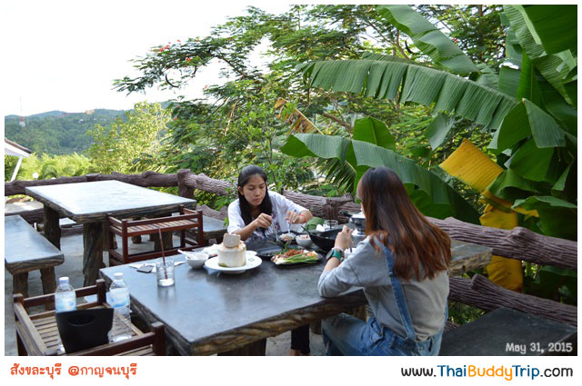 ร้านอาหารของบ้านสะพานรัก ตั้งอยู่บนระเบียงชั้น 2 นะครับ นั่งทานไปมองยอดไม้ไป ดูภูเขา ดูแม่น้ำไป ชิลไปอีกแบบ