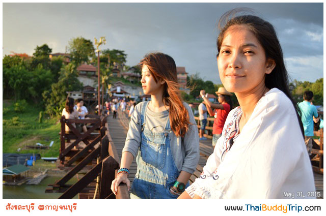 หันกลับมาที่สะพานมอญกันต่อ ตอนนี้เริ่มแดดร่มลมตก อากาศเย็นสบาย ลมพัดตลอด นักท่องเที่ยวซึ่งไม่รู้ว่าพักอยู่ ณ แห่งหนตำบลใดกันบ้างต่างออกมายืน เดิน นั่ง เพื่อสัมผัสบรรยากาศยามเย็นกันอย่างล้นหลาม แบบว่าเต็มสะพานประมาณนั้น