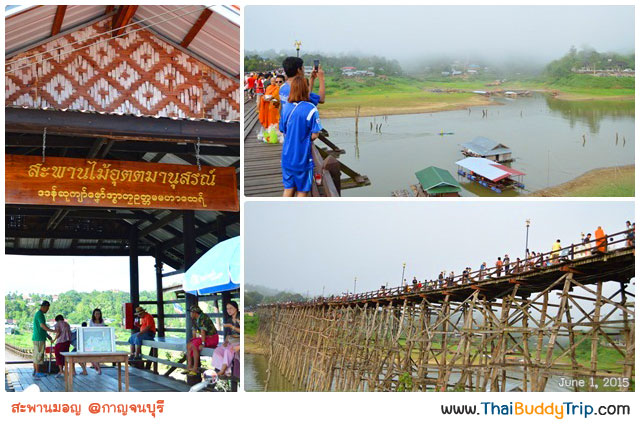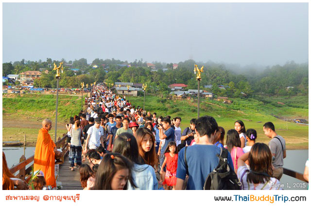 มุมที่มองมาจากเรือจะเห็นว่าสะพานมอญทั้งสูง ใหญ่และยาวมากกก ไม่น่าเชื่อว่าจะสร้างจากไม้ทั้งหมดที่แข็งแรงและรับนักท่องเที่ยวได้มากขนาดนี้