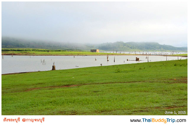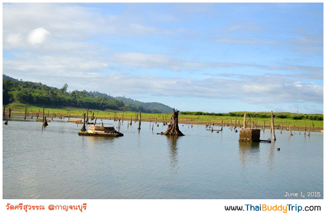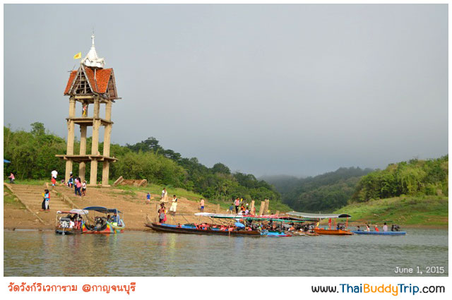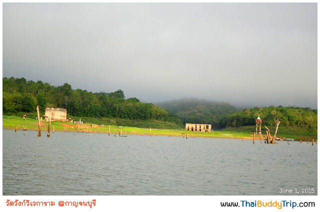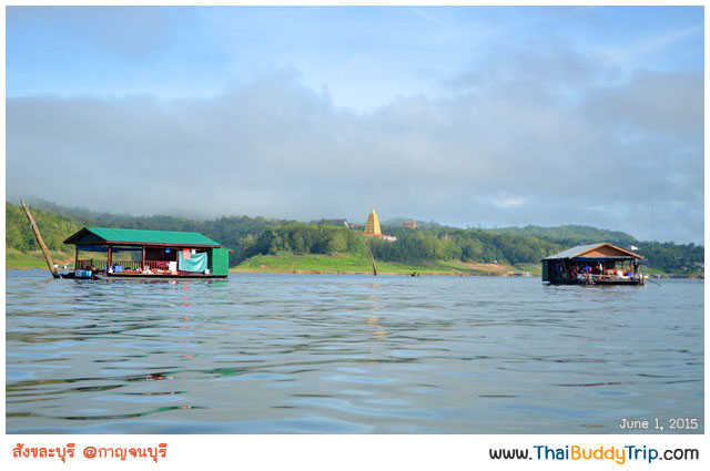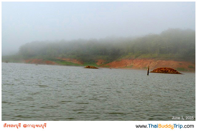 นั่งเรือชมบรรยากาศ ฟังไกด์บรรยายให้ความรู้เกี่ยวกับเมืองสังขละบุรีในอดีตว่าโรงเรียน โรงพยาบาล ฯลฯ อยู่ตรงไหน สักพักก็มาถึงวัดแรกที่จะไปชมและไหว้พระกันแล้วครับ วัดที่ว่านี้คือ “วัดสมเด็จ” ครับ ซึ่งพี่คนขับเรือบอกว่าไปวัดที่อยู่ไกลก่อน เดี๋ยวค่อยกลับมาวัดที่อยู่ใกล้
