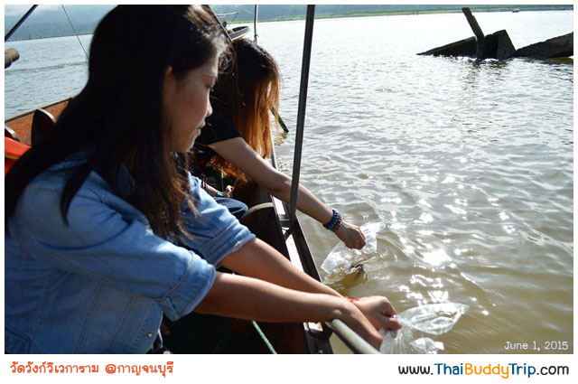 เสร็จแล้วก็กลับออกมาปล่อยปลา ปล่อยตะพาบ เสริมบุญกันเพราะวันนี้เป็นวันพระใหญ่ด้วย (วันวิสาขบูชา)