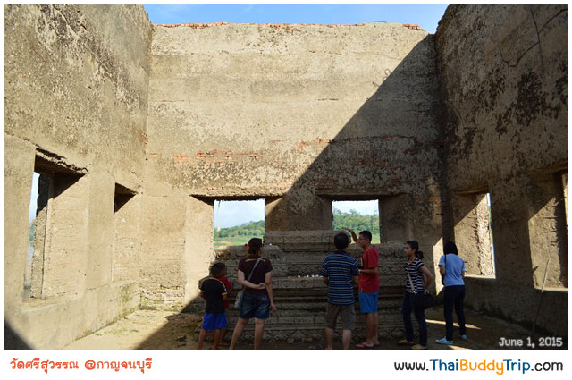 วัดศรีสุวรรณ นี่อยู่กลางน้ำเลยครับ แม้ช่วงนี้น้ำจะน้อยแต่ก็ยังท่วมถึงฐานพระอุโบสถอยู่ เรือสามารถจอดเทียบท่าที่ฐานพระอุโบสถได้เลย สอบถามจากไกด์บอกว่าน้ำจะเยอะช่วงเดือนตุลาคม ถามว่าเวลาน้ำเยอะจะเยอะขนาดไหน ก็สังเกตได้จากยางรถยนต์ที่ผูกไว้เป็นกันชนสำหรับเรือเทียบในยามที่น้ำเยอะน่ะครับ สูงจริงๆ