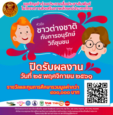 ประกวดสื่อประชาสัมพันธ์ ชาวต่างชาติกับการอนุรักษ์วิถีชุมชน ปิดรับผลงานวันที่ 25 พ.ย.
